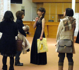 2012年3月9日、札幌コンサートホールKitara小ホールで、当協会主催の「第1回コラボレーション・リサイタル」が開かれました。 このコンサートのために作曲された新曲3曲は、いずれもバッハからインスピレーションを受けて作られたもの。札幌フルート協会のみなさんの演奏により、新曲とともにバッハの曲も演奏され、彩り豊かなコンサートになりました。 ![]() リハーサル風景 (左)終演後エントランスで談笑されるフルートの八條美奈子氏 (右)アンコール曲では会員・白岩優拓氏の作品も演奏されました。 |