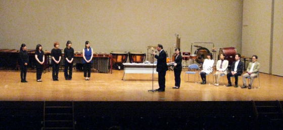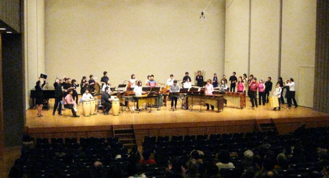 2015年3月8日(日)、札幌の「ちえりあホール」で、北海道打楽器協会主催の「打楽器フェスティバル2015」が開催されました。 このコンサートは二部構成となっており、第一部は新人演奏会として、5組の出場者から上位2組が5月に行われる日本打楽器協会主催の新人演奏会に出場できるコンクールを兼ねた場に、第二部は北海道打楽器協会会員9団体による演奏会という構成です。 第二部では北海道作曲家協会の会員3名の作品も演奏され、打楽器だけとは信じられない色彩豊かな演奏がホールに響き、最後は出場者全員によるラテンメドレーでフィナーレを迎えました。 みなさん、パワフルな演奏ありがとうございました。 ![]() ![]() ![]() ![]() ![]() |